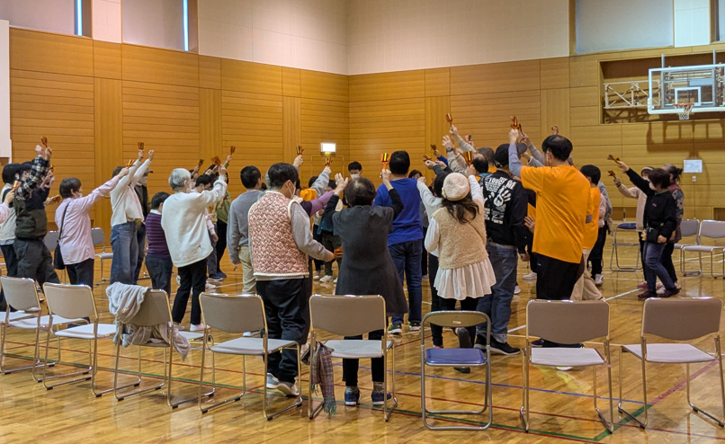 令和8年1月25日(日)13∶30〜14∶30、講師に日本音楽療法学会認定音楽療法士・日本ミュージックケア協会認定指導者の尾川久子先生をお招きしてミュージックケアを開催しました。奈良県営福祉パーク多目的運動ホールにて48名が参加しました。初めて参加される方でも、また、どんな障害の程度の方でも参加できるプログラム。曲にあわせてゆっくり体を動かしたり、止めたり。楽しい時間を過ごせました。